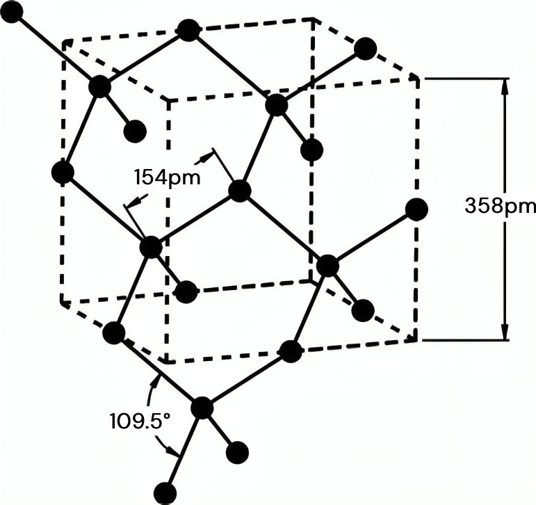 If you’ve studied a bit of chemistry, you might know that diamond is made up of the simple carbon atom, much like its more common (and much cheaper) sibling, graphite. In graphite, we see layers of carbon atoms, and in each later, each carbon atom is bonded to three other atoms, with one valence electron free and not involved in the bonding. These free valence electrons form energy bands that are close in energy to each other, and are hence able to absorb small amounts of energy in the form of visible light to make the jump from one band to the other, causing graphite to appear opaque and black as it absorbs almost all visible light.