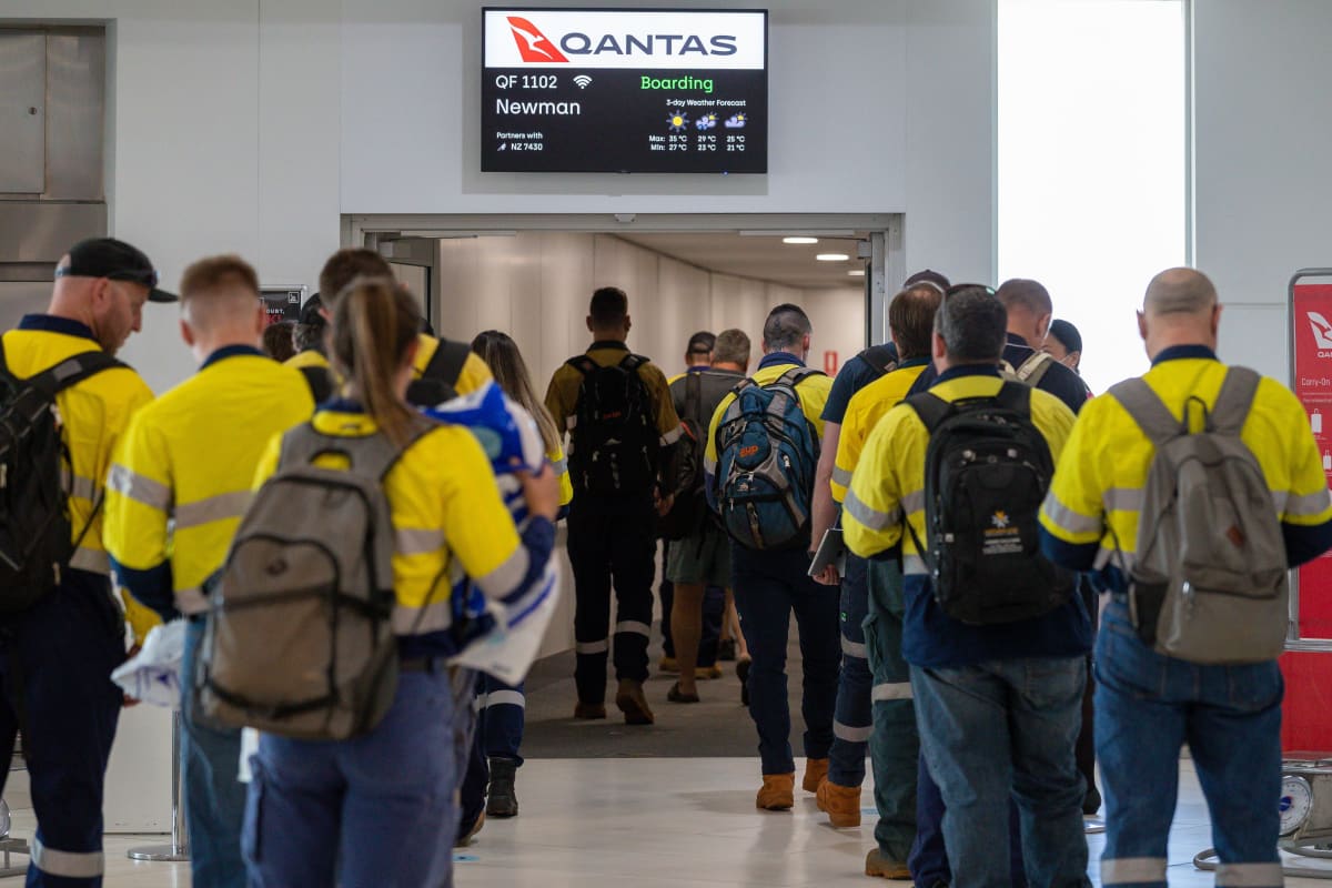 FIFO workers queueing up at Perth Airport’s Terminal 4 for an early morning flight off to Newman. You can spot them fairly easily by their characteristic high-vis jackets, safety pants and thick work boots. Image courtesy of The West Australian.