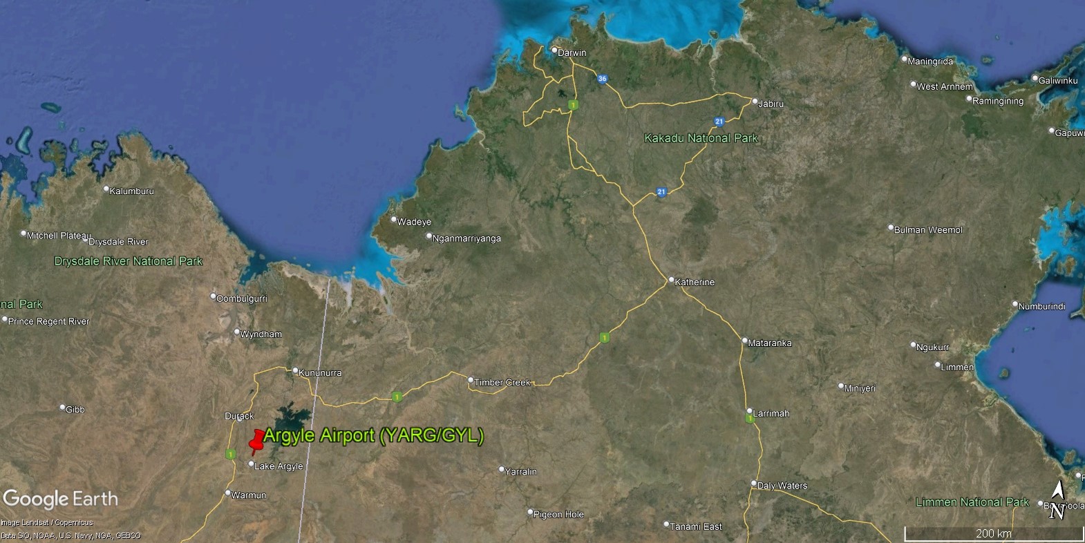 Sitting at 2,116 kilometres away on a bearing of 37 degrees from Perth airport, Argyle Airport is the furthest of all the FIFO airports we will be exploring, with a flight time from Perth in the region of 2 hours and 40 minutes. It receives just about 1 flight per week from Perth, making it the most infrequently serviced airport out of all the FIFO airports we will be exploring. There’s a good reason for this, which we will be going into below. Virgin Australia services the route with 737-700s instead of Fokker 100s due to the great distance Argyle is away from Perth, which would either exceed the Fokker 100’s range carrying a full load of passengers and cargo, or simply be less economical to operate than the 737-700, because the Fokker 100 would not have much extra capacity to tanker fuel for the return sector back to Perth, as we discussed above in an earlier section.