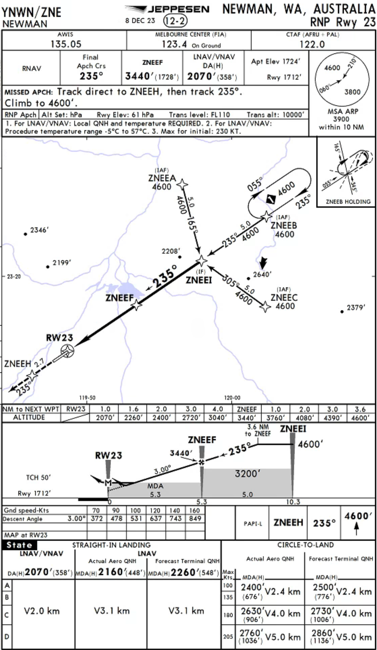 You can see how after takeoff the aircraft turn to intercept the outbound track from the airport. For reference, the airport elevations of Newman and Port Hedland are 1724 feet and 33 feet above mean sea level respectively.