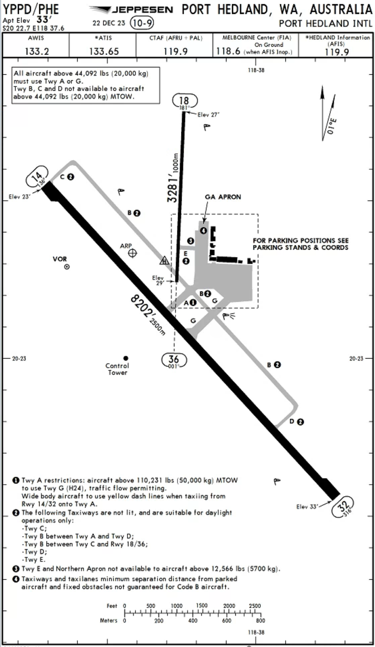 I’ll be covering 4 of these airports in detail below, including their approach and departure procedures, things to take note of when operating into these “hot and high” airports, with temperatures reaching up to 40 degrees Celsius and airfield elevations of up to 2000 feet. This, together with the short runways of only about 2000 metres makes operating into these airports exciting, with tight aircraft performance margins that required good planning to ensure we stay within limits. We’ll discuss fuel tankering, air traffic services, as many of these FIFO airports are in uncontrolled airspace – in the Pilbara, the airspace is largely uncontrolled below FL125.