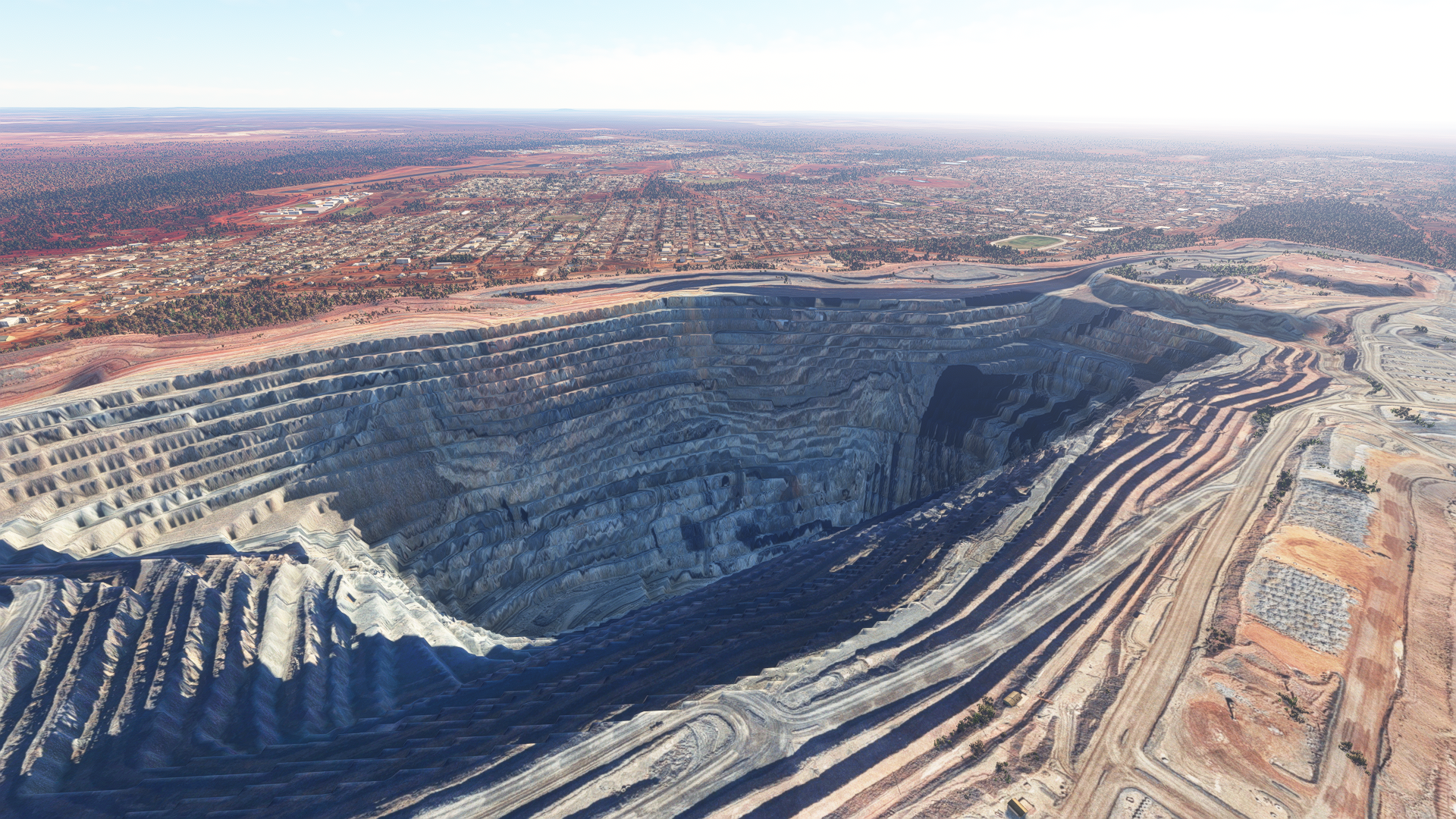 The city of Kalgoorlie-Boulder, the airport, and the open-cut Super Pit gold mine all in one shot. At 3.5 kilometres long, 1.5 kilometres wide and 0.6 kilometres deep, it really gives you a sense of scale for just how large the Super Pit is.